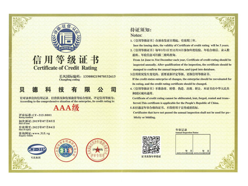 3A信用等级证书