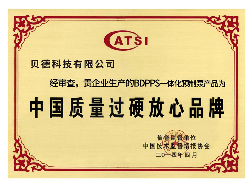 中国质量过硬推荐品牌证书