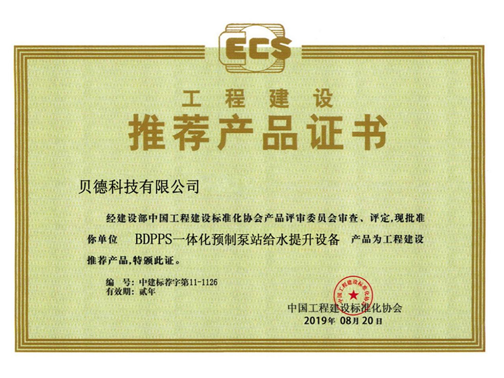 工程产品推荐证书